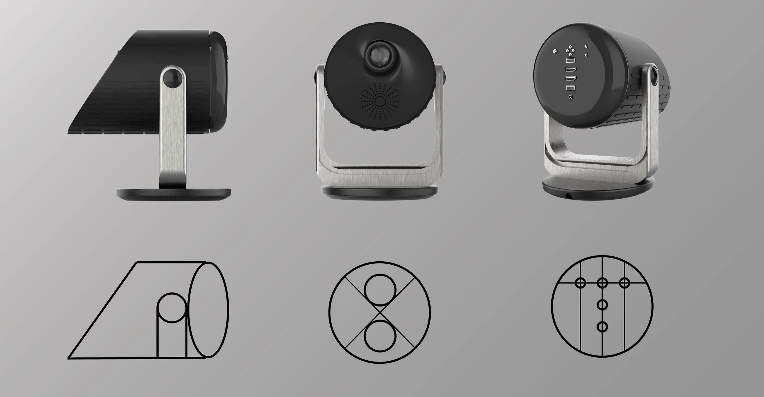 Early sketches focused on prioritizing the main functions of the projector: stability and maneuverability.